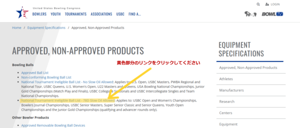 USBCホームページ内における、最新の「USBC非適合ボールリスト」の正しい参照先は以下の通りです。