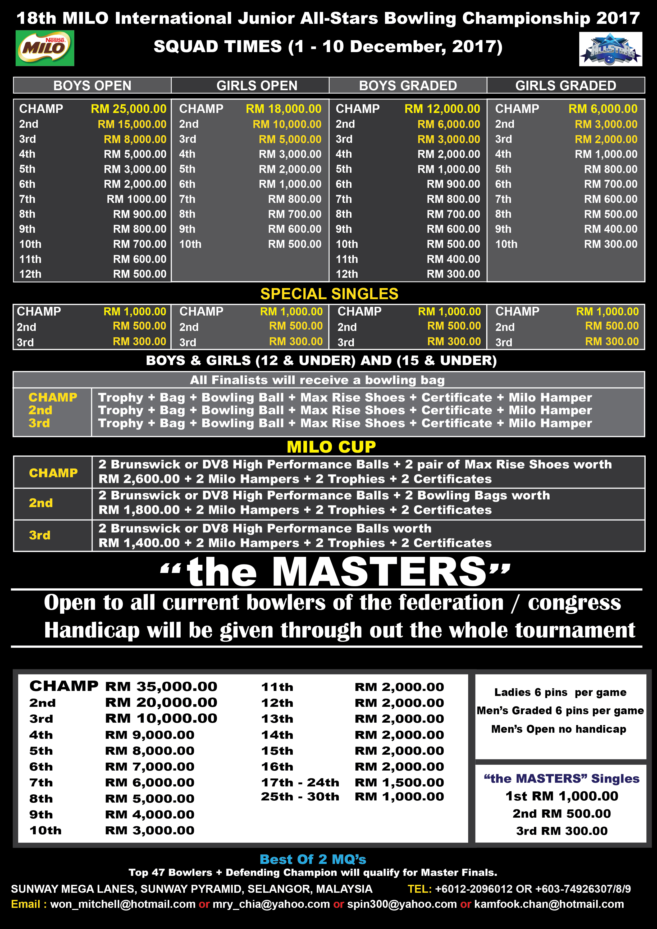 第18回ミロインターナショナルジュニアオールスター選手権とザ・マスターズ・チャンピオンシップ2017(2017年11月29日~12月10日開催)のエントリー受付が開始されました。
